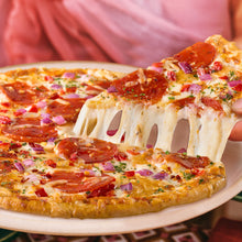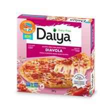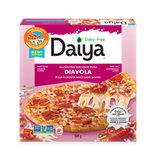 This one's for the spice fans! Loaded with house-made plant-based spicy salami flavoured slices, red onions, red jalapeño, and more, Diavola is packed with just the right amount of spice. It's also got tons of gooey dairy-free cheese, perfectly herby tomato sauce, and a light, crispy gluten-free crust. Every slice is seriously addictive.